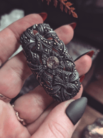Sterling with natural marcasite stones and a rhinestone center. Back is marked Industria Argentina. 1x2 in