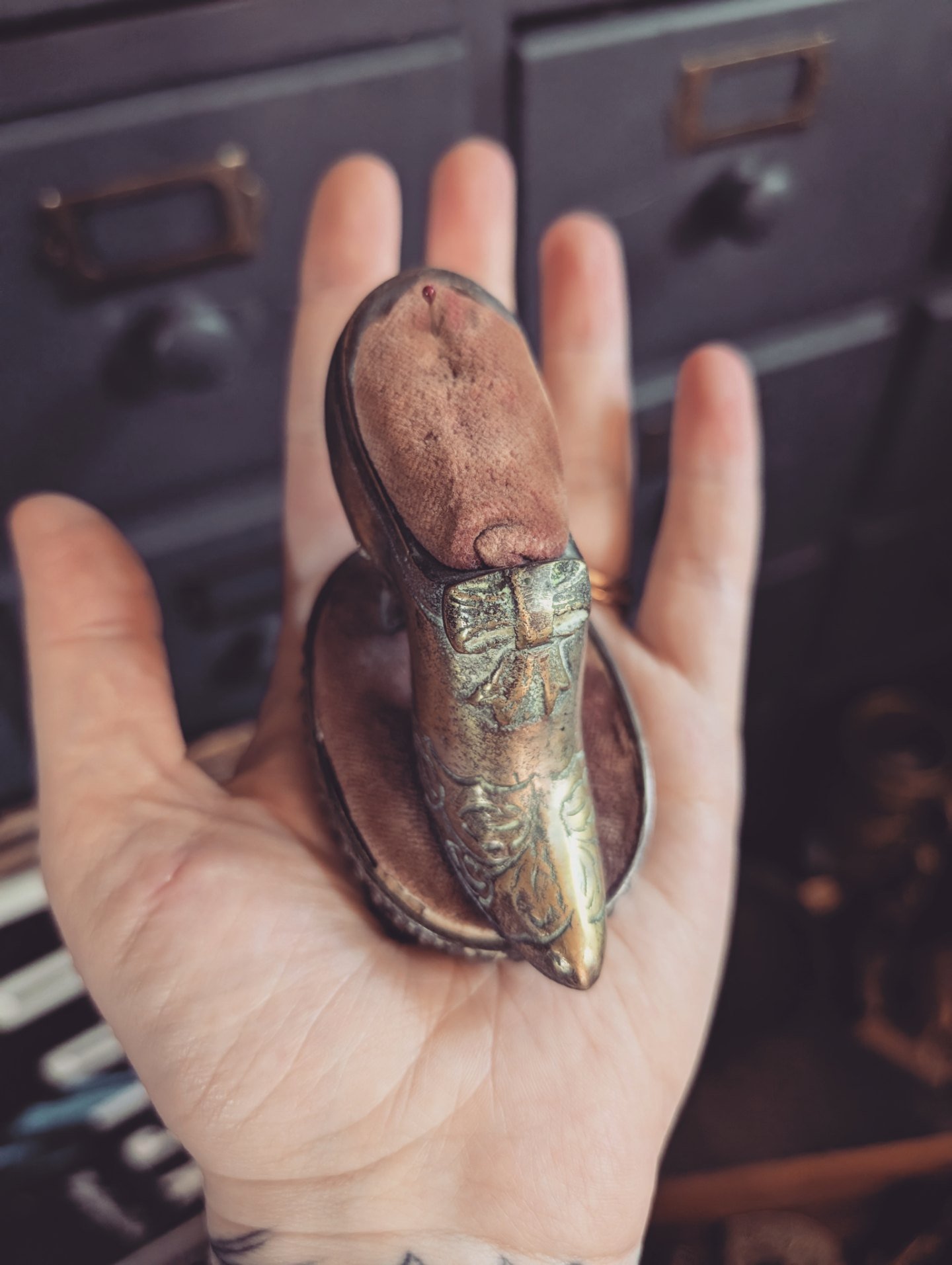 Antique shoe pin cushion