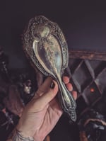 Brush and comb with some wear. Silverplate. Engraved with an 'F'. Comb has some broken teeth.