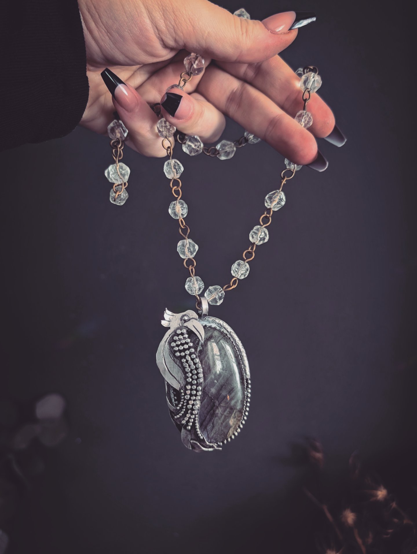 Labradorite is a stone of intuition. It is said to open your third eye and help develop psychic abilities. It is also a stone of protection. A stone of magic.