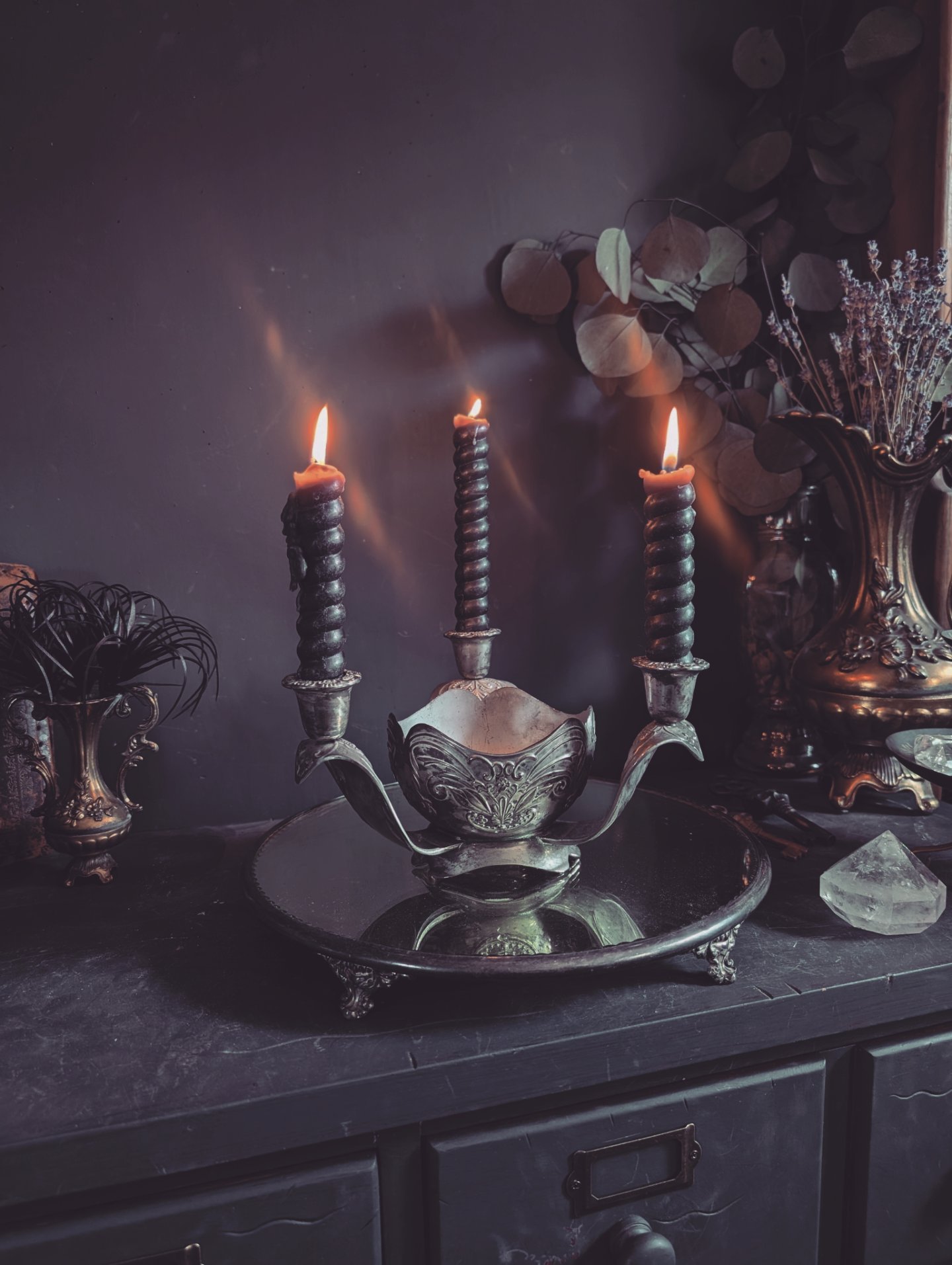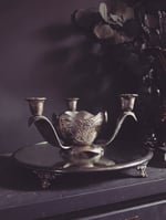 Holds 3 taper candles with offering bowl in the center