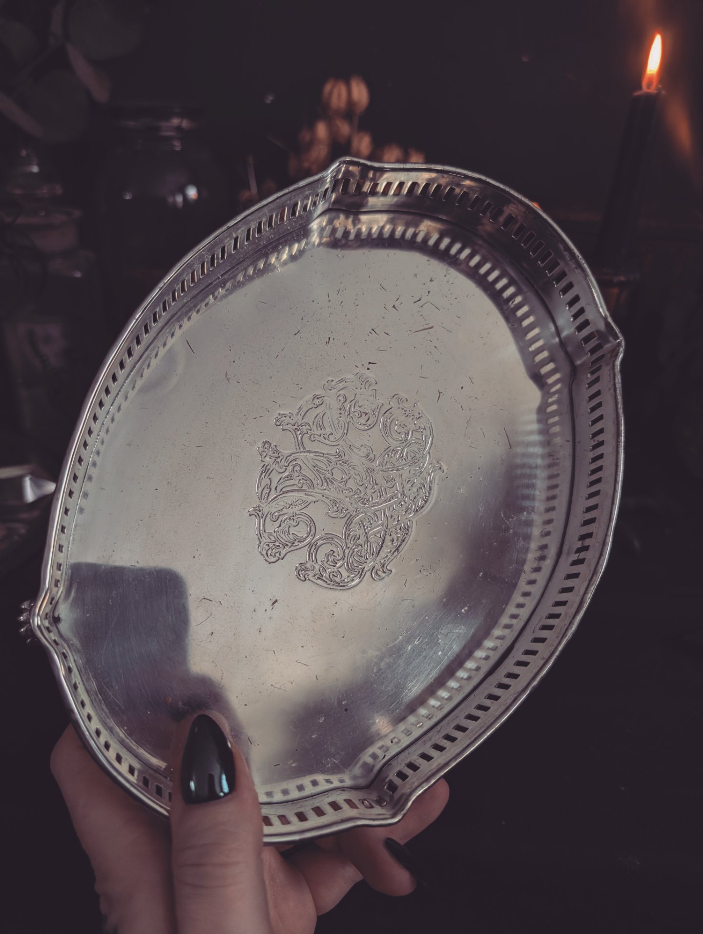 This is a vintage white brass piece. Someone polish it up really shiny. It's in good condition. It does have some scratches inside but it's really nice and I think you're going to love it. This would be great for your altar or to hold bottles, jewelry, crystals, anything really measures 9x6.5