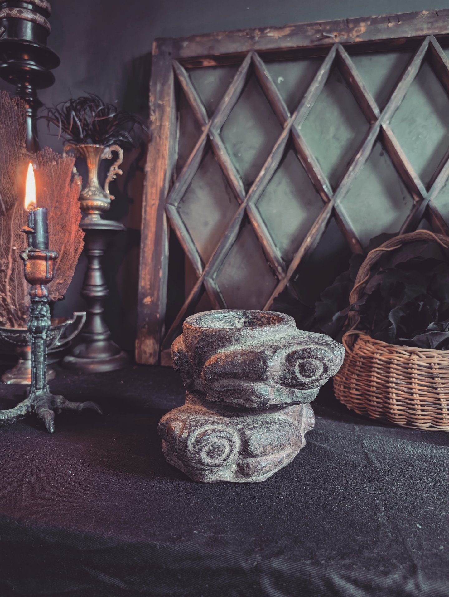 Sold as a pair. 6x4 in. Vintage plaster. These can hold a pillar candle.