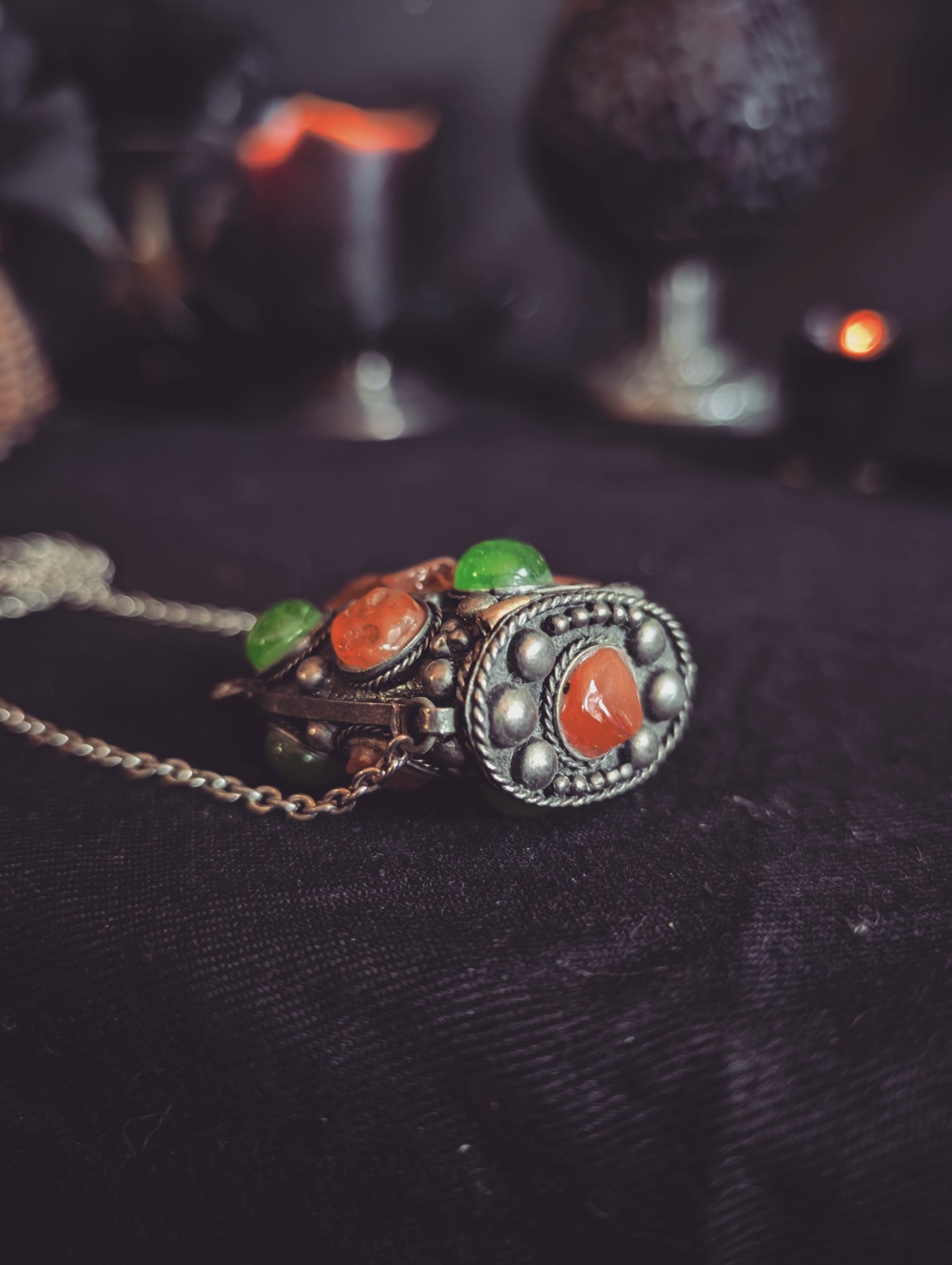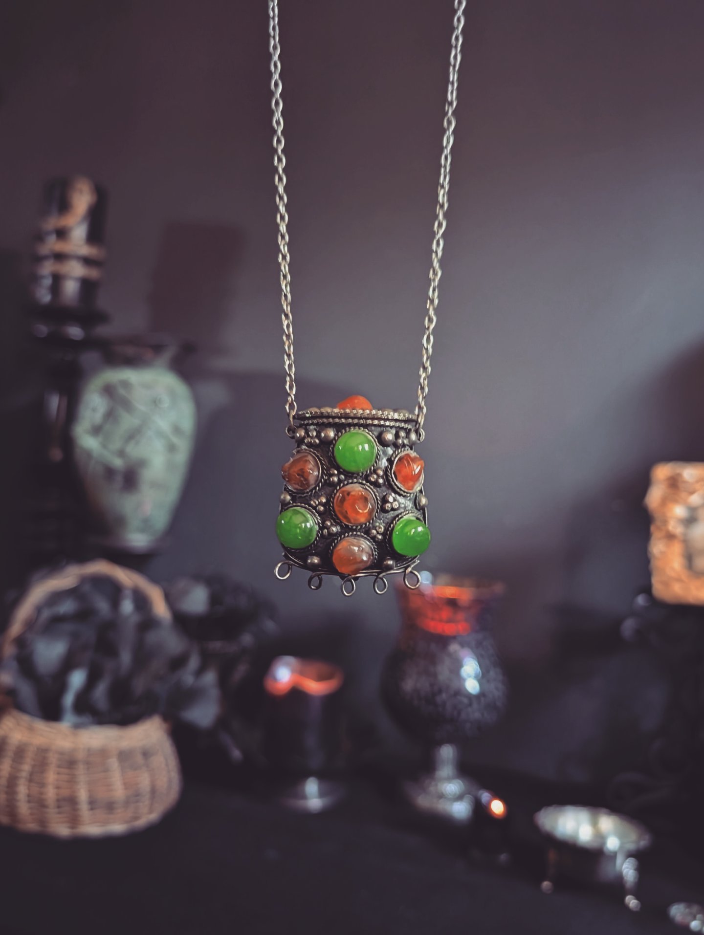 Vintage metal on a 42 in chain. Pendant is 2 in