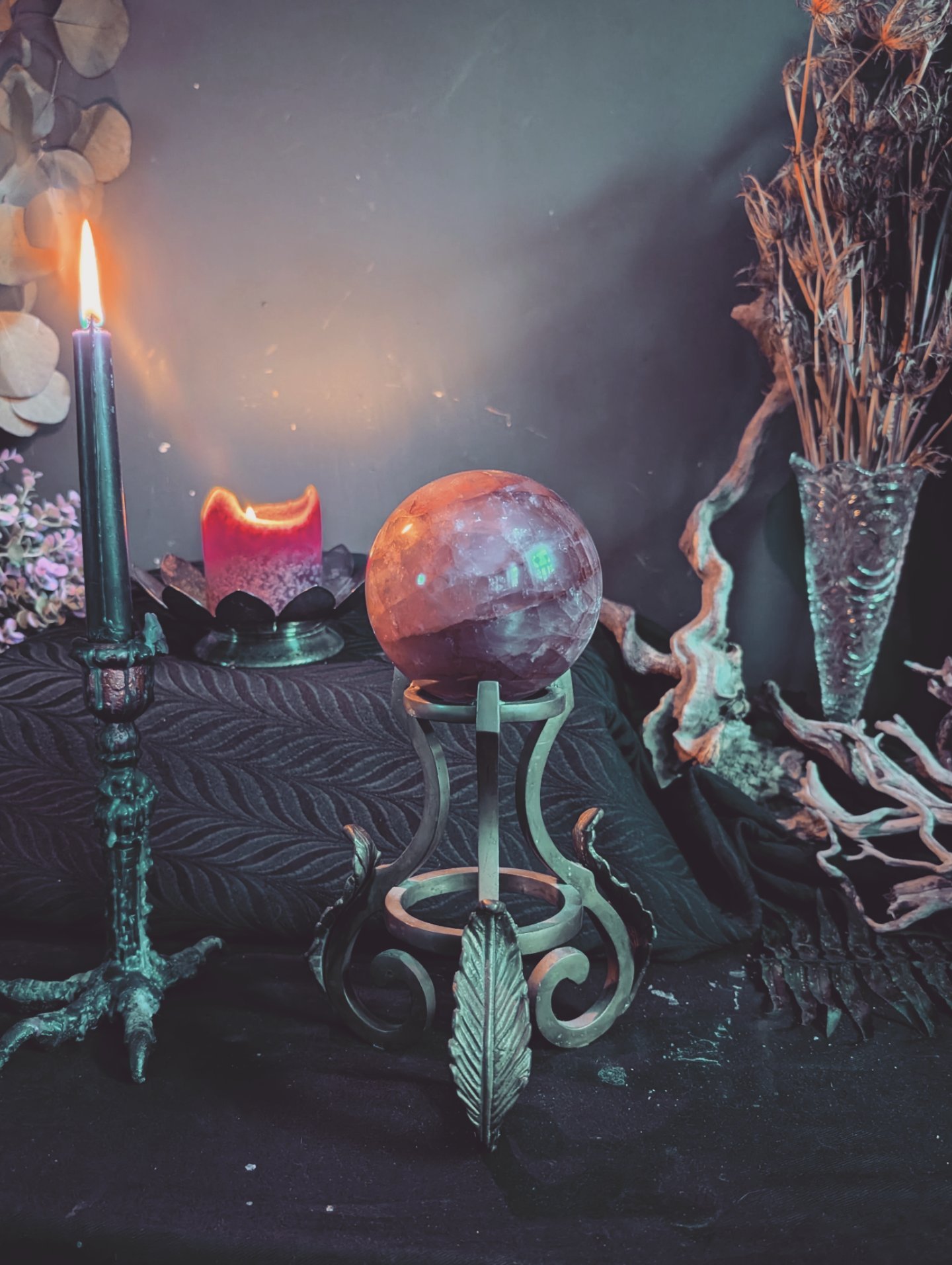 Perfect for a crystal ball. This heavy brass stand measures 7 in tall and the opening at the top is about 2 in. The crystal ball is not included.