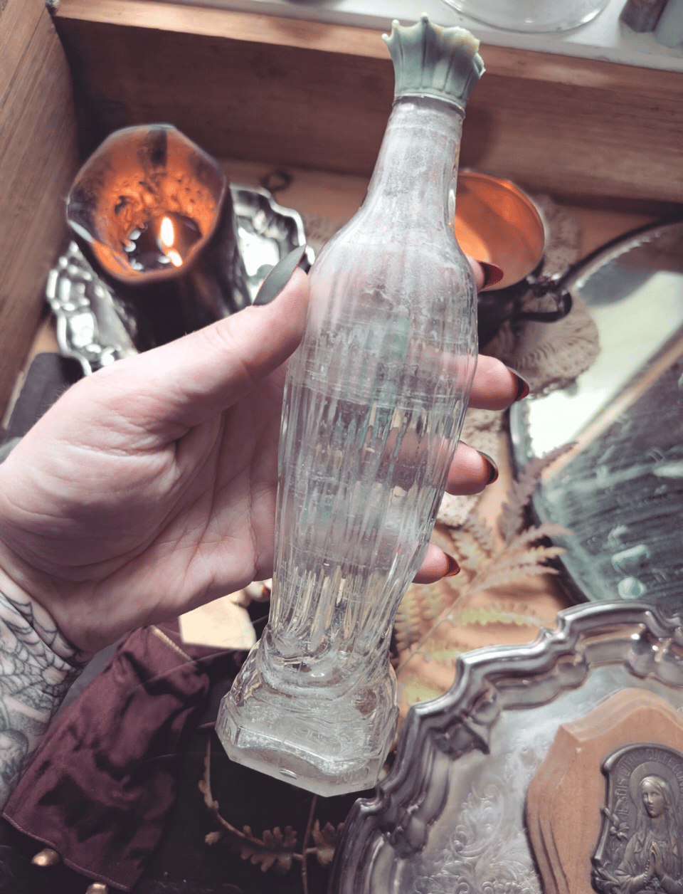 Antique, French piece. 8.5 in tall. Crown has some damage.
