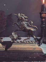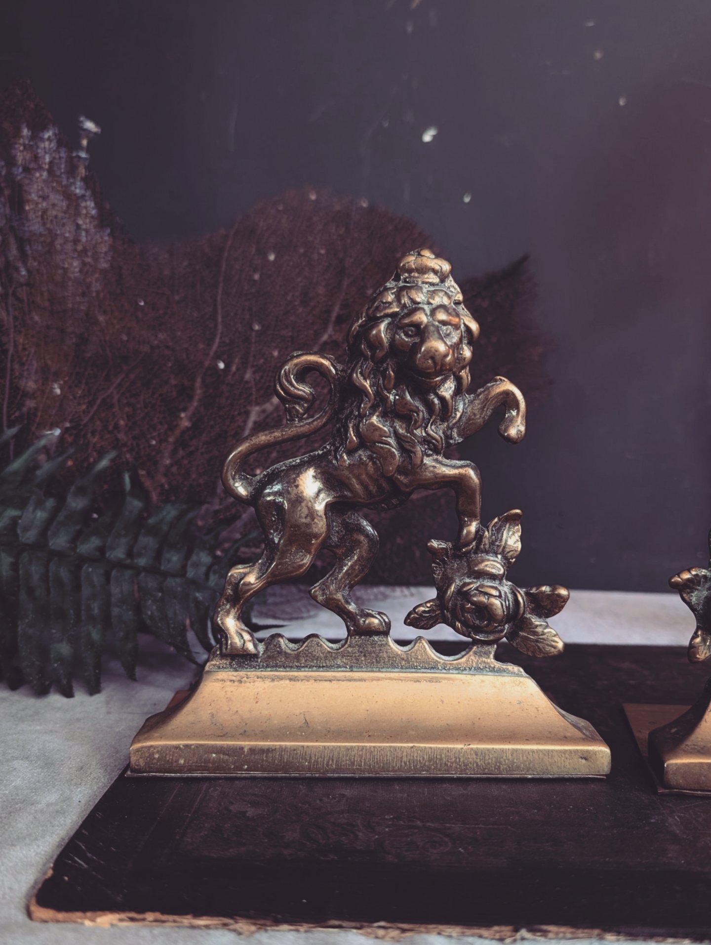 Sold as a pair. These are solid brass and each one is 6 in tall and the bases are 5.5 in wide. You could use these as bookends or just display them on a shelf. They're absolutely beautiful.