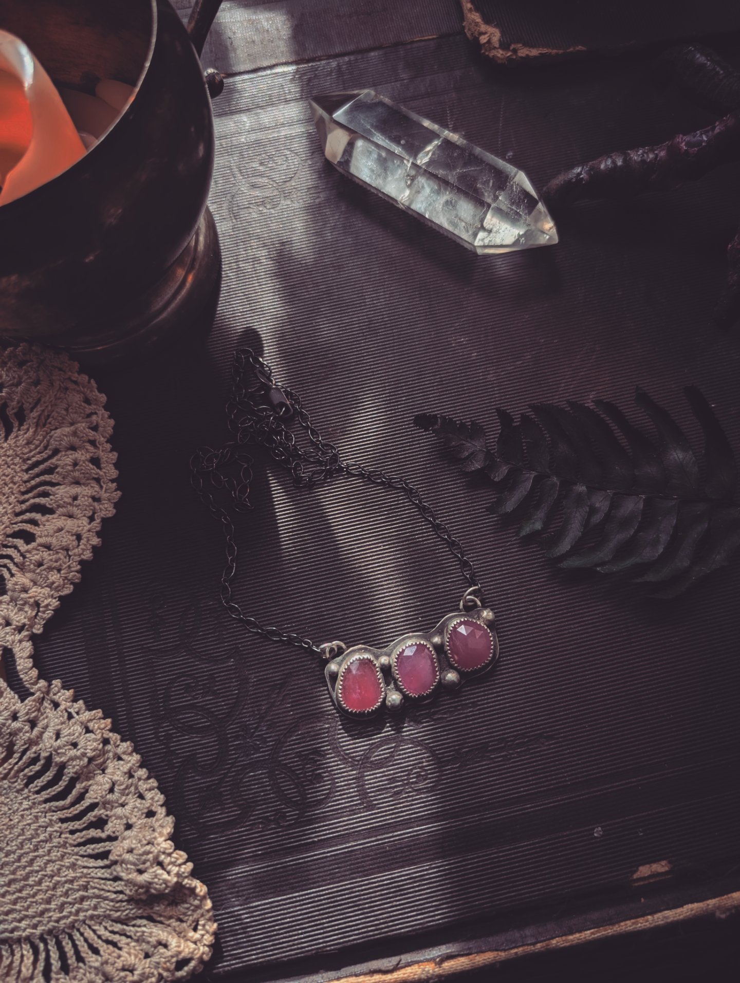 This is a handmade one of a kind piece. Bright pink tourmaline collection set in sterling silver.