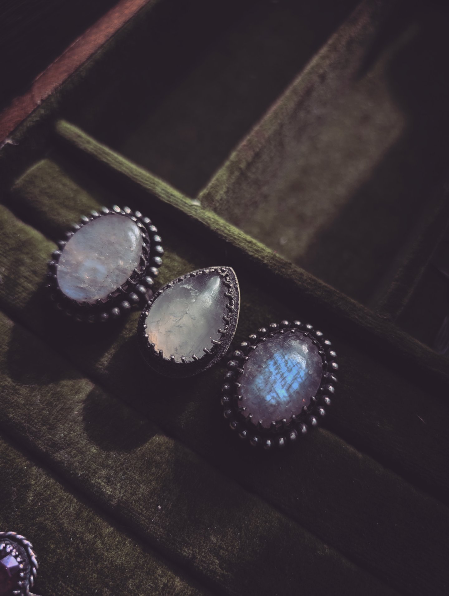 stunning, high quality Moonstones set in sterling silver. Each ring comes on a pretty patterned band.