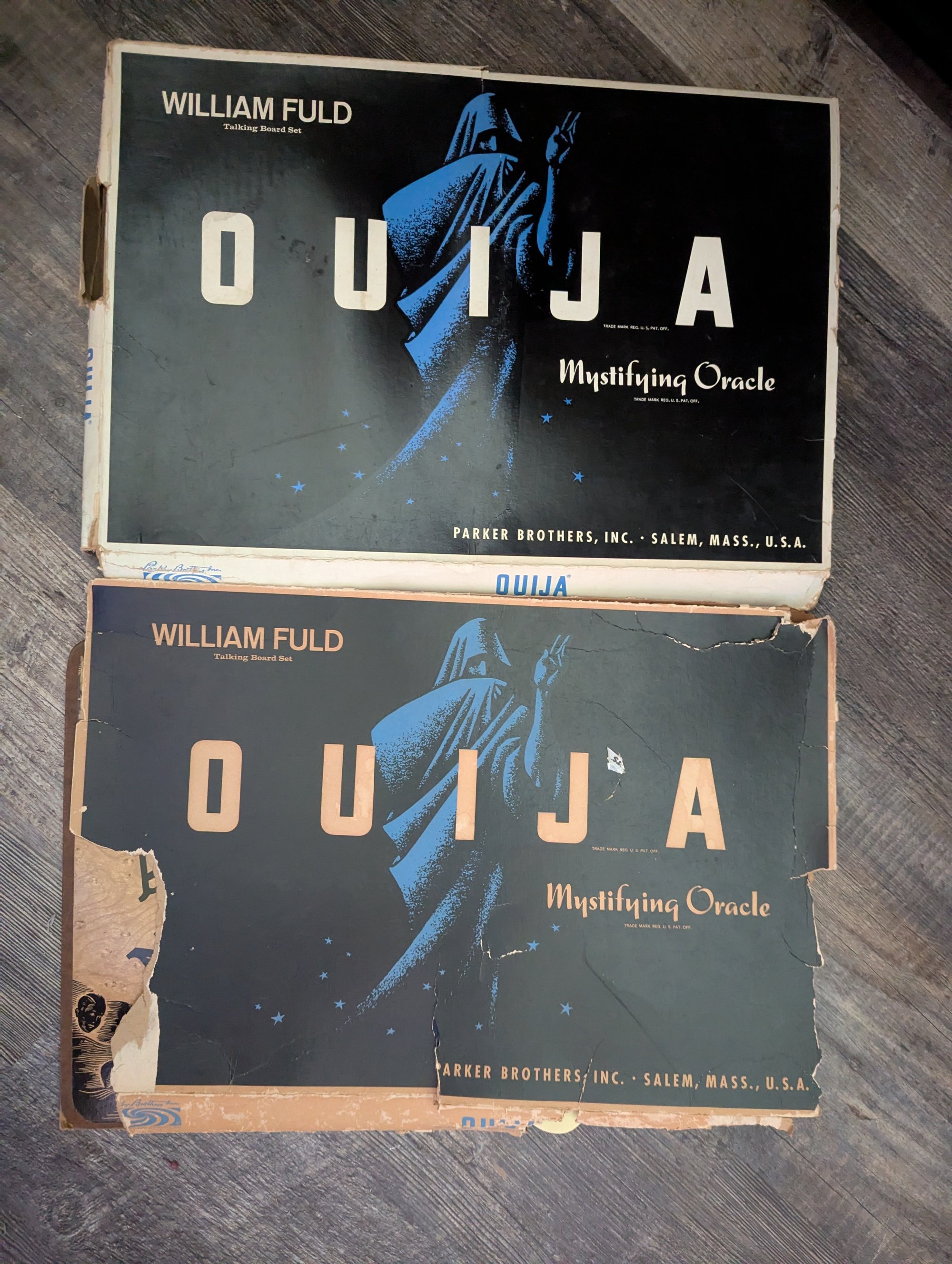 Box is very damaged..board and planchette are good. I have 2 available in the same condition. Sold as is