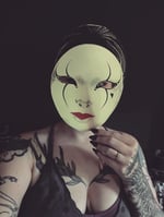 10 available. Sold individually. These are paper masks that have sticks glued onto them. They're all discolored unfortunately sold as is.