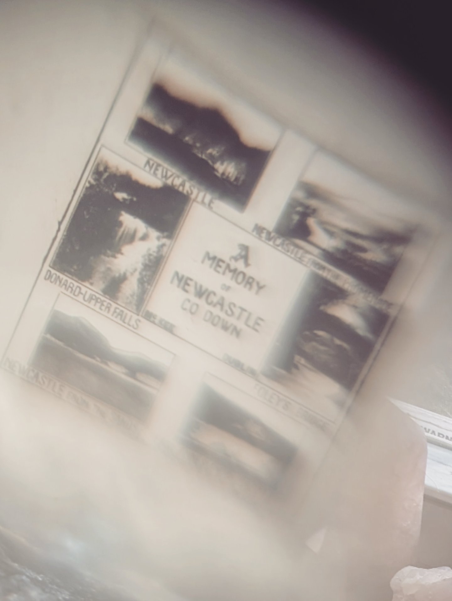 A. This is a mechanical pencil that probably still works if you put some lead in there. It is made in France and it measures 4.5 in Long. It is a souvenir of Newcastle in Ireland. And it has this crazy little glass window that you can peer through and see the little pictures inside.