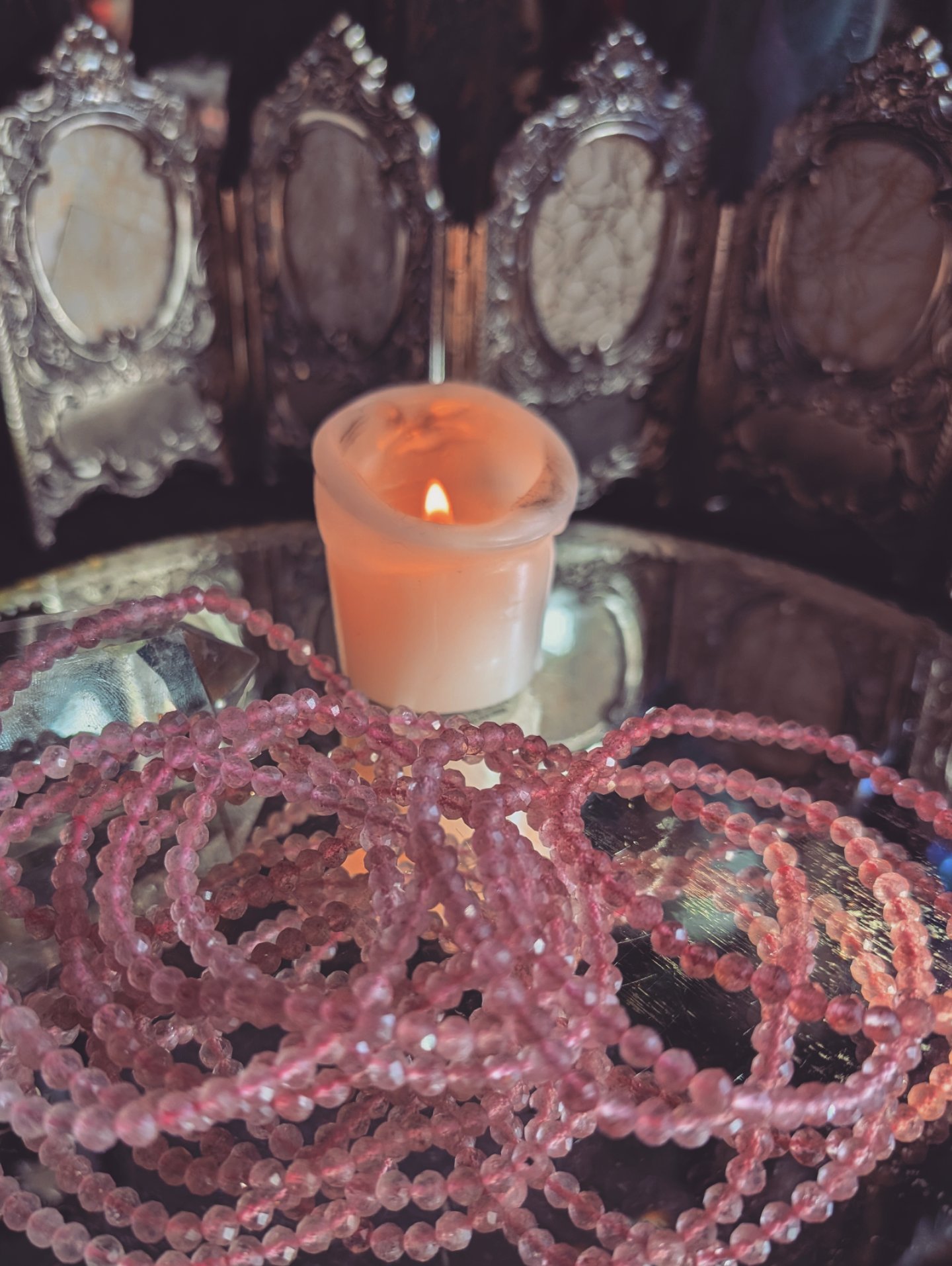 Sold individually. These are delicate. Shimmery faceted strawberry quartz. This is a heart healer. It's gentle and he helps us heal emotional wounds