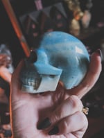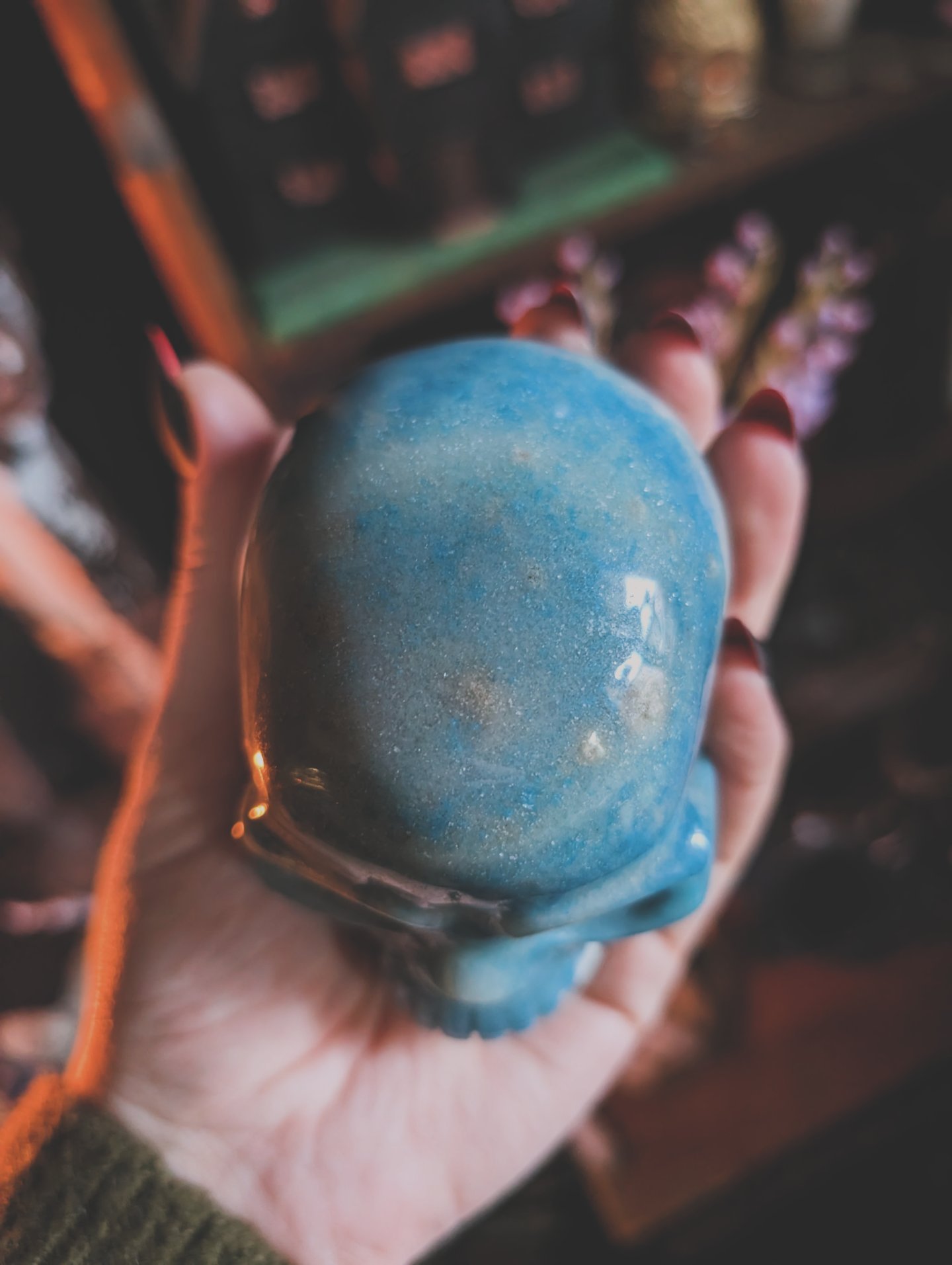 Beautiful carved crystal skull. It's about the size of a baseball 3 in tall, 4 in wide. Really nice quality carving.